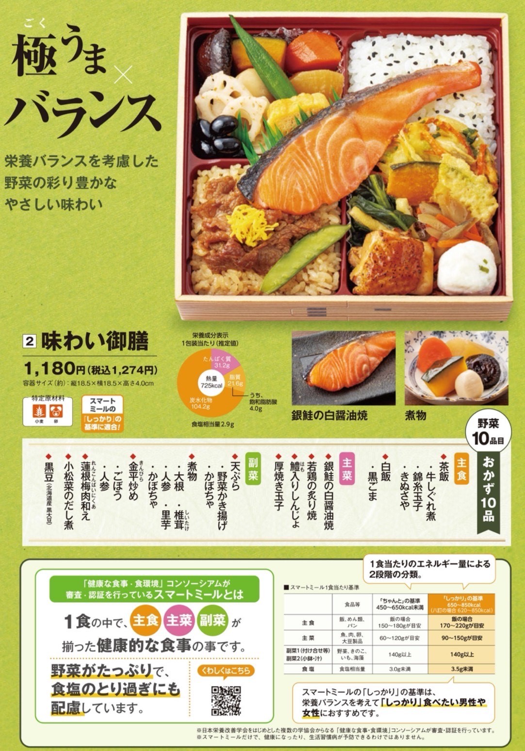 味わい御膳 1,467円 ※お茶代と手数料が含まれます。